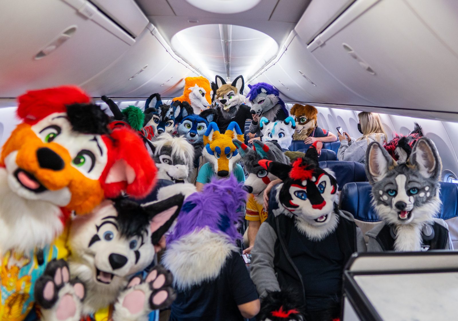 According to VOX, only a small minority of furries actually own a fursuit and the majority of those who dress up just wear a tail or other accessories. To get so many fursuit heads on. single flight would appear to be incredibly rare.