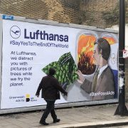 “Advertising plays a crucial, but often overlooked, role in fueling the climate crisis,” commented Andrew Simms from Brandalism’s UK campaign. “By pushing high-carbon goods, such as cheap flights, advertising is complicit in driving carbon emissions higher at a time when we need to see an urgent reversal”.