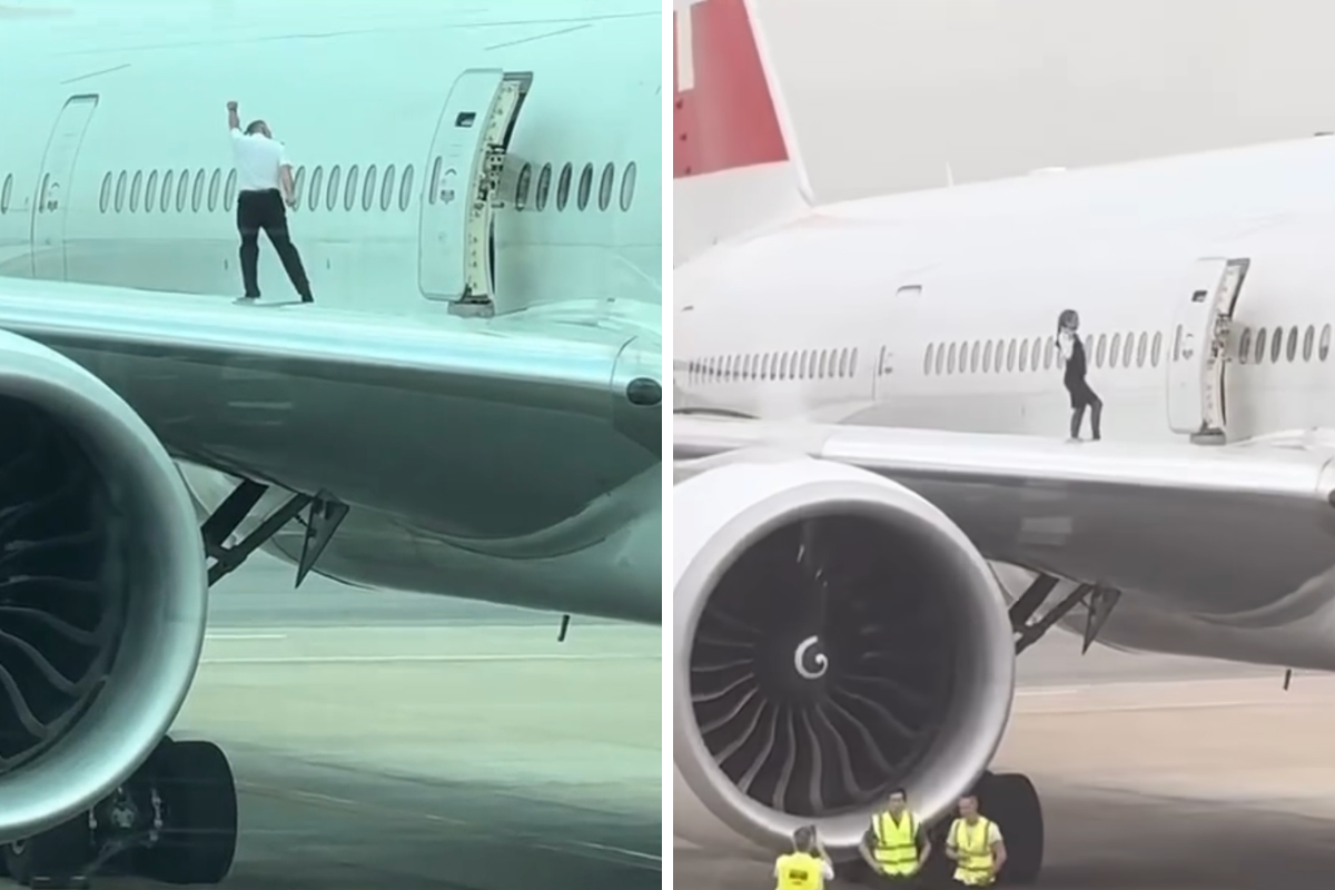 “What looks like fun in the video is life-threatening. The wings of the Boeing 777 are about five meters high,” the airline said in a statement. “A fall from that height onto the hard surface can be devastating. This behavior will not be tolerated.”