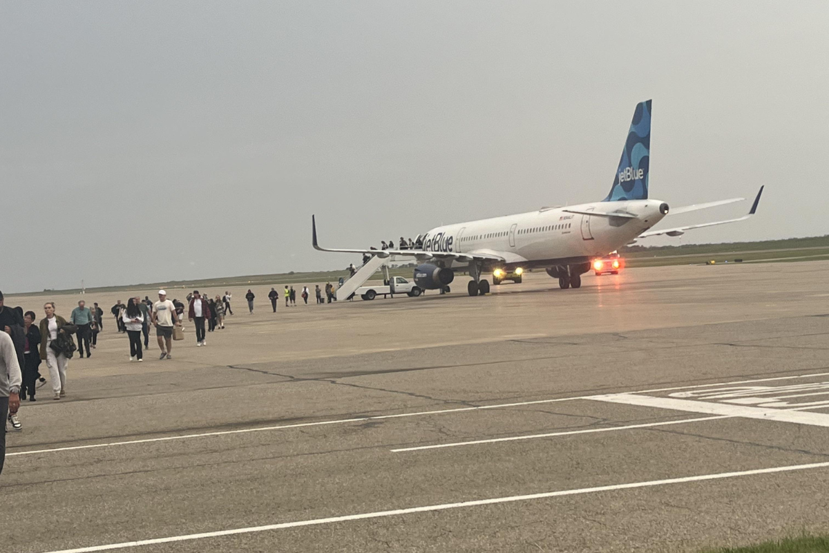 JetBlue managed to arrange for a replacement Airbus A321 to be sent from Boston to Salina on Saturday night where it landed at around midnight. In the end, the passengers arrived in San Diego around eight hours later than planned.