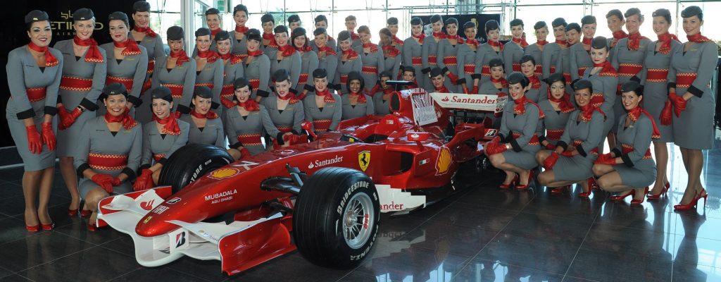 Not that Etihad Airways is the only airline to present its female cabin crew at a Grand Prix. Singapore Airways also lends a hand at the Singapore Grand Prix with a team of its so-called ‘Singapore Girls’ cabin crew.