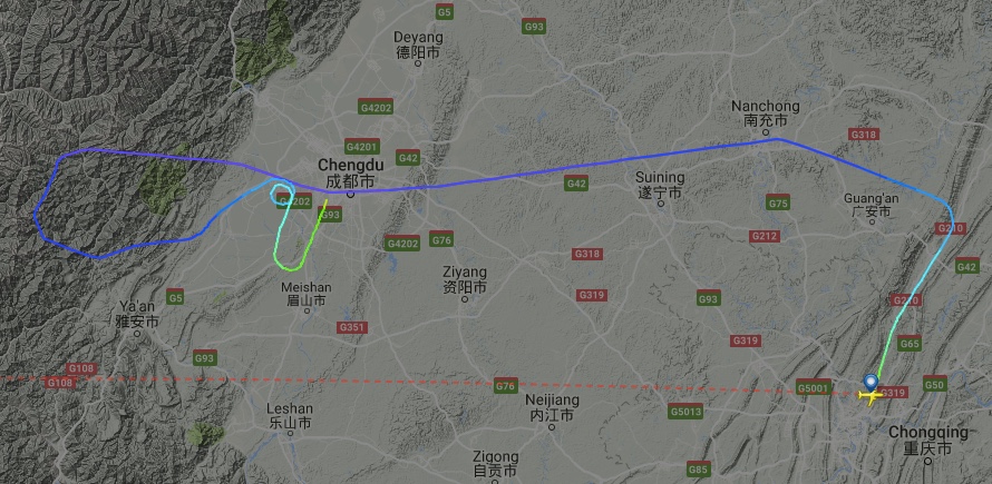 According to data from Flightradar24, Flight 3U8633 departed Chongqing at approximately 6.30am on Monday morning. Data from the flight tracking site shows the Airbus A319 was cruising at approximately 31,000 feet when it suddenly descended 8,000 feet in around two minutes.