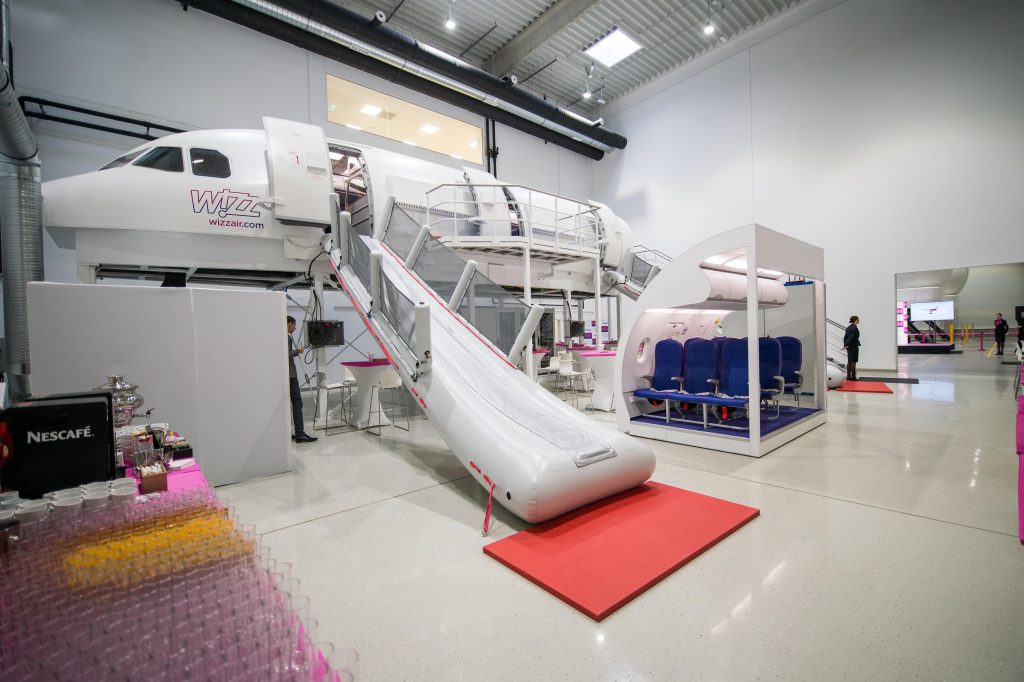 The centre is equipped with two Airbus A320 CAE 7000XR Series full-flight simulators as well as a cutting edge Cabin Emergency Evacuation Trainer and a catchy-named V9000 Commander Next-Generation Fire Trainer. At full capacity, the centre will be able to train up to 300 people every day – taking trainees from all over the Wizz Air network for initial and recurrent training, as well as pilot type ratings.