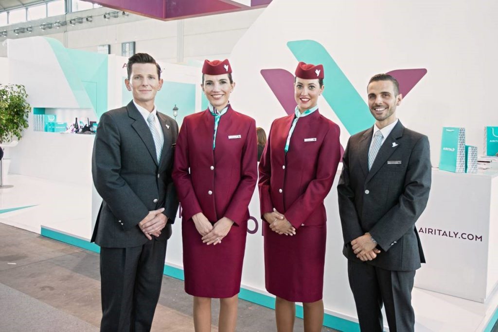 It’s probably no coincidence either that Air Italy’s cabin crew and ground staff wear a near-identical version as that worn by their Doha-based colleagues at Qatar Airways.
