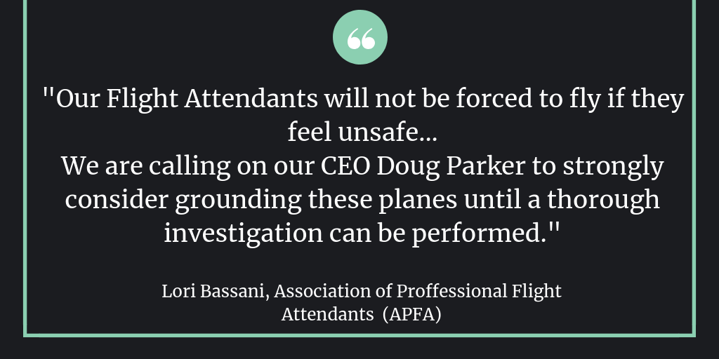 The Association of Professional Flight Attendants (APFA) which represents over 25,000 flight attendants at American Airlines said its members were very concerned and called on the airline’s chief executive, Doug Parker to immediately ground the planes pending further investigation.
