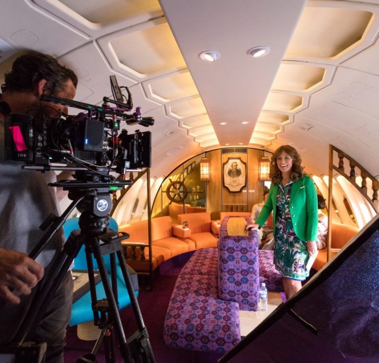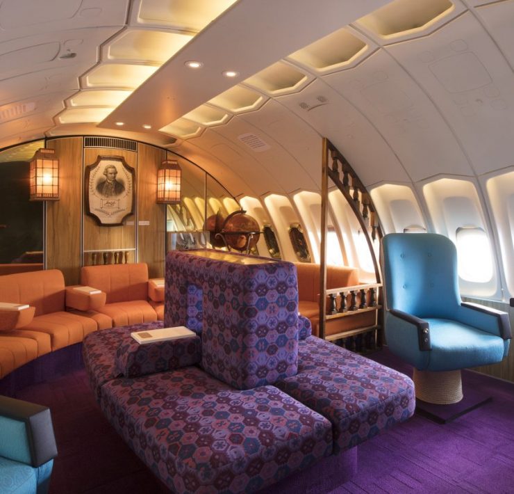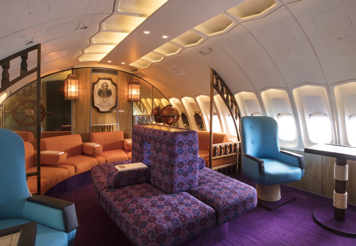 The wall panels that feature in the upper deck Captain Cook lounge, for example, were retrieved from an original Boeing 747-200 retired in the Mojave desert. An original 1930s lifejacket was also found, while a tea set that was used on Qantas flights in the ’40s was also tracked down and used in the video.