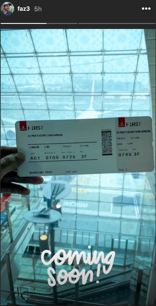 The Crown Prince, affectionately known as Fazza, took to social media to post a picture of the boarding pass on his Instagram story for the 7.45 am flight to London. Fazza didn’t say what he would be doing in the United Kingdom but Dubai’s ruling family own a number of properties in and around the British capital.
