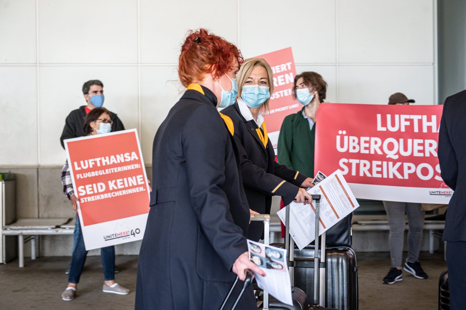 The ugly scenes started last Thursday just a short time after a group of Lufthansa crew had arrived in Canada when protestors organized by the UNITE HERE Local 40 union met the pilots and flight attendants outside Vancouver International Airport waving placards and approaching individual crew members.