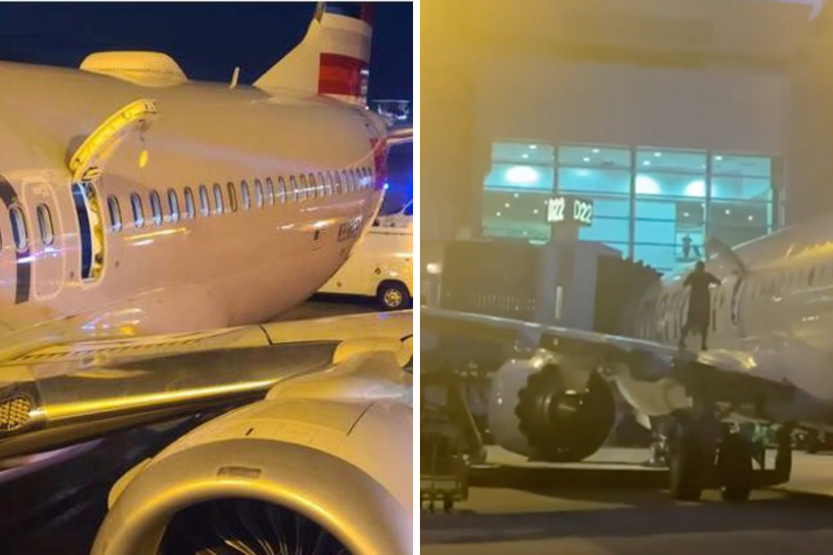 The impatient passenger clambered out onto the wing and then jumped onto the tarmac before law enforcement detained him close to the jetbridge. The unidentified man was later seen being escorted out of the airport by police officers.