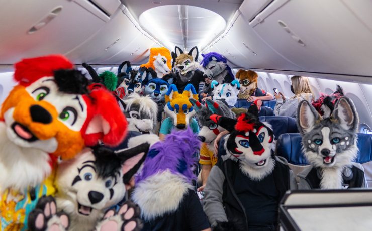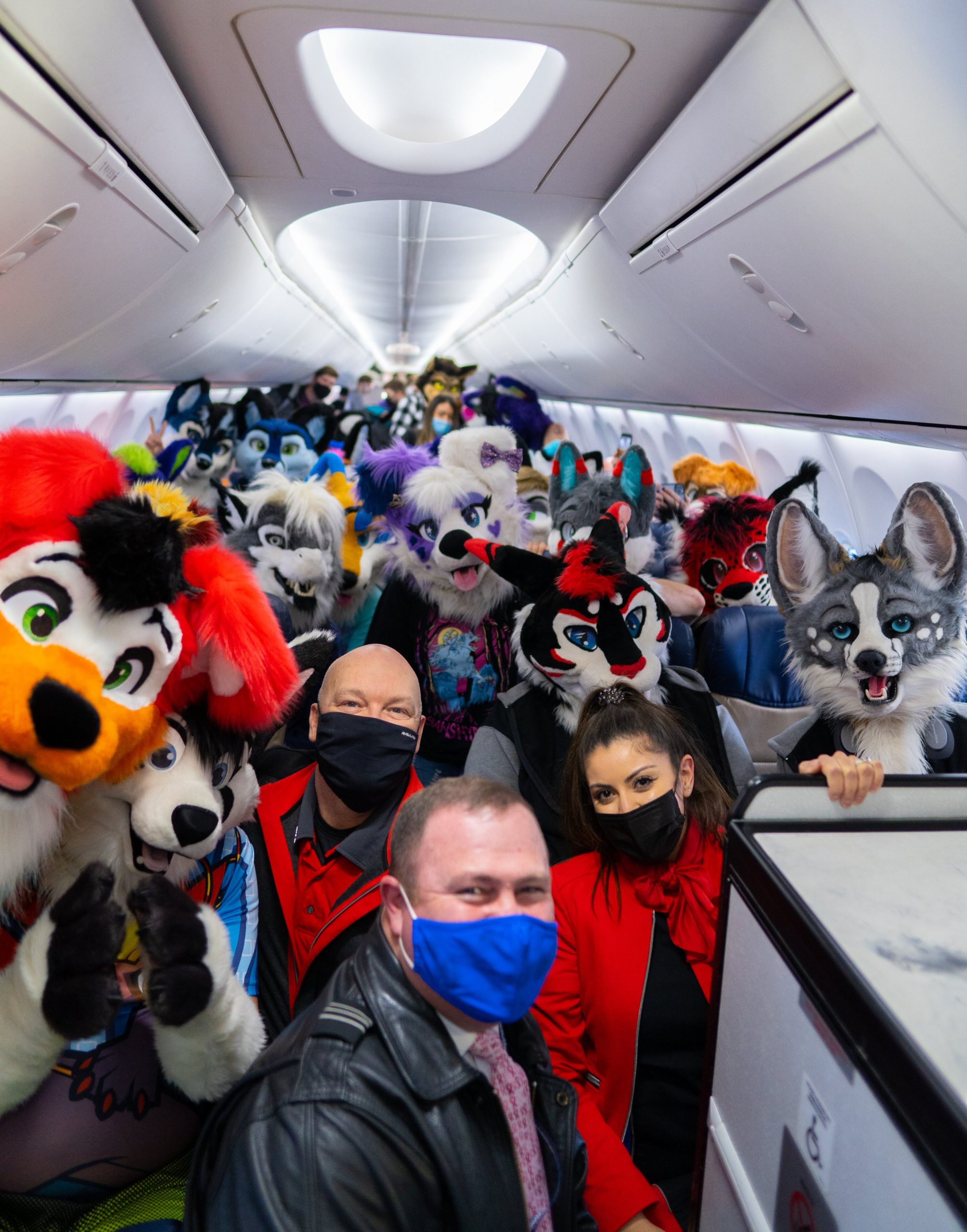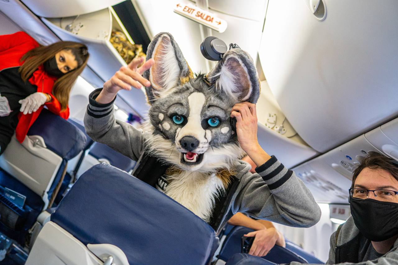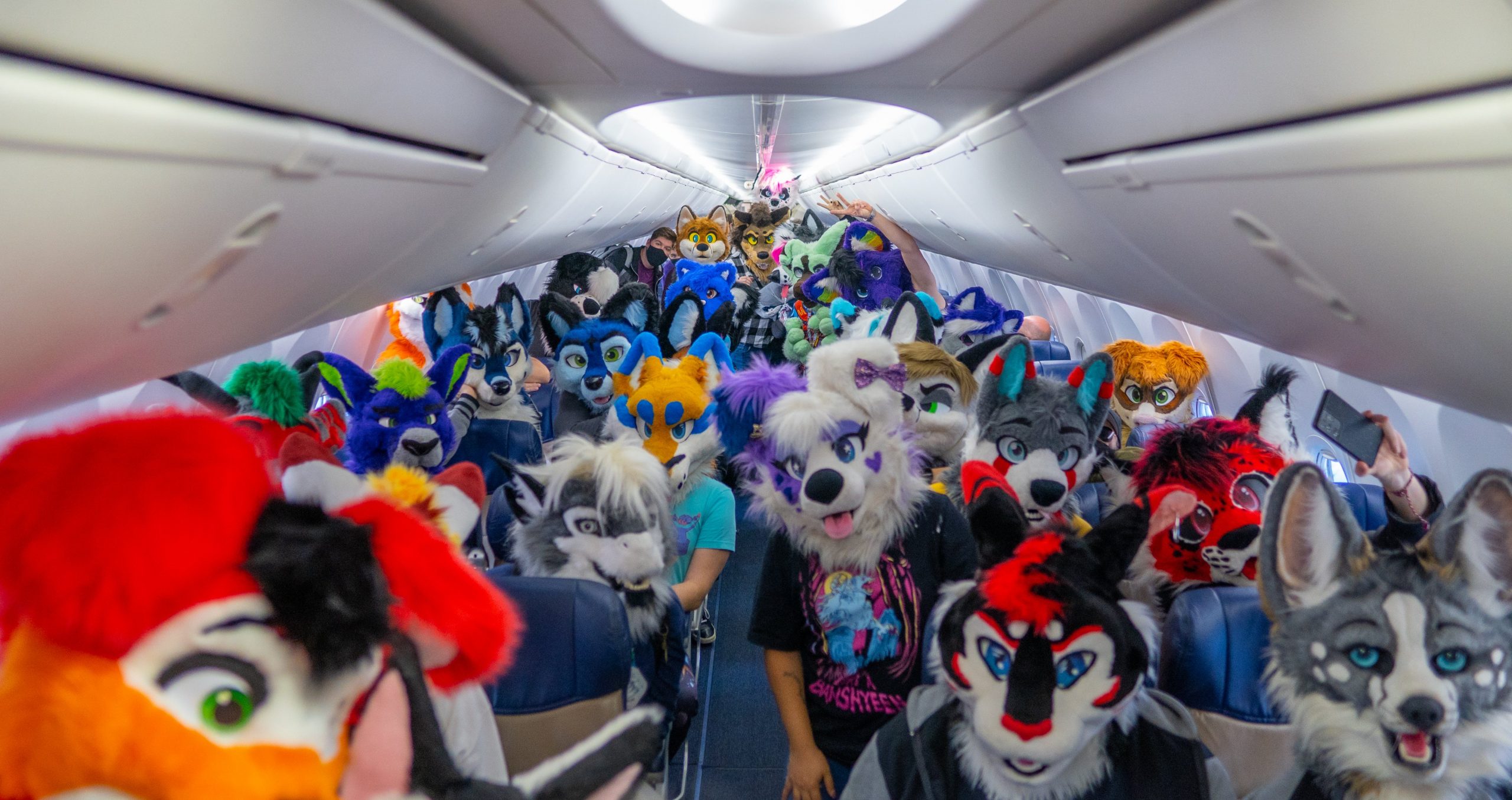 According to VOX, only a small minority of furries actually own a fursuit and the majority of those who dress up just wear a tail or other accessories. To get so many fursuit heads on. single flight would appear to be incredibly rare.