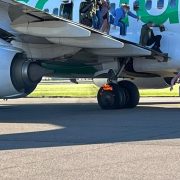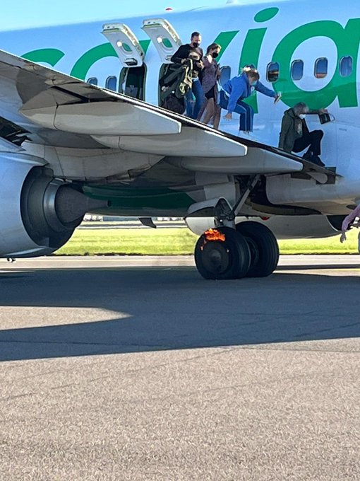One image shared on social media showed a small fire at the main landing gear. Firefighters responded to the incident and quickly dampened down the fire.