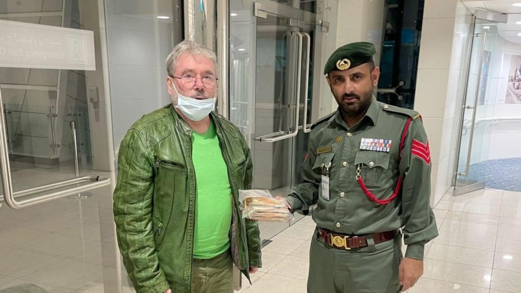 Dubai police officers managed to track Tellbach down during his return journey to Germany and reunited him with the cash.