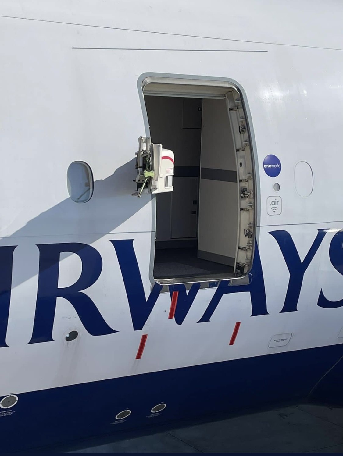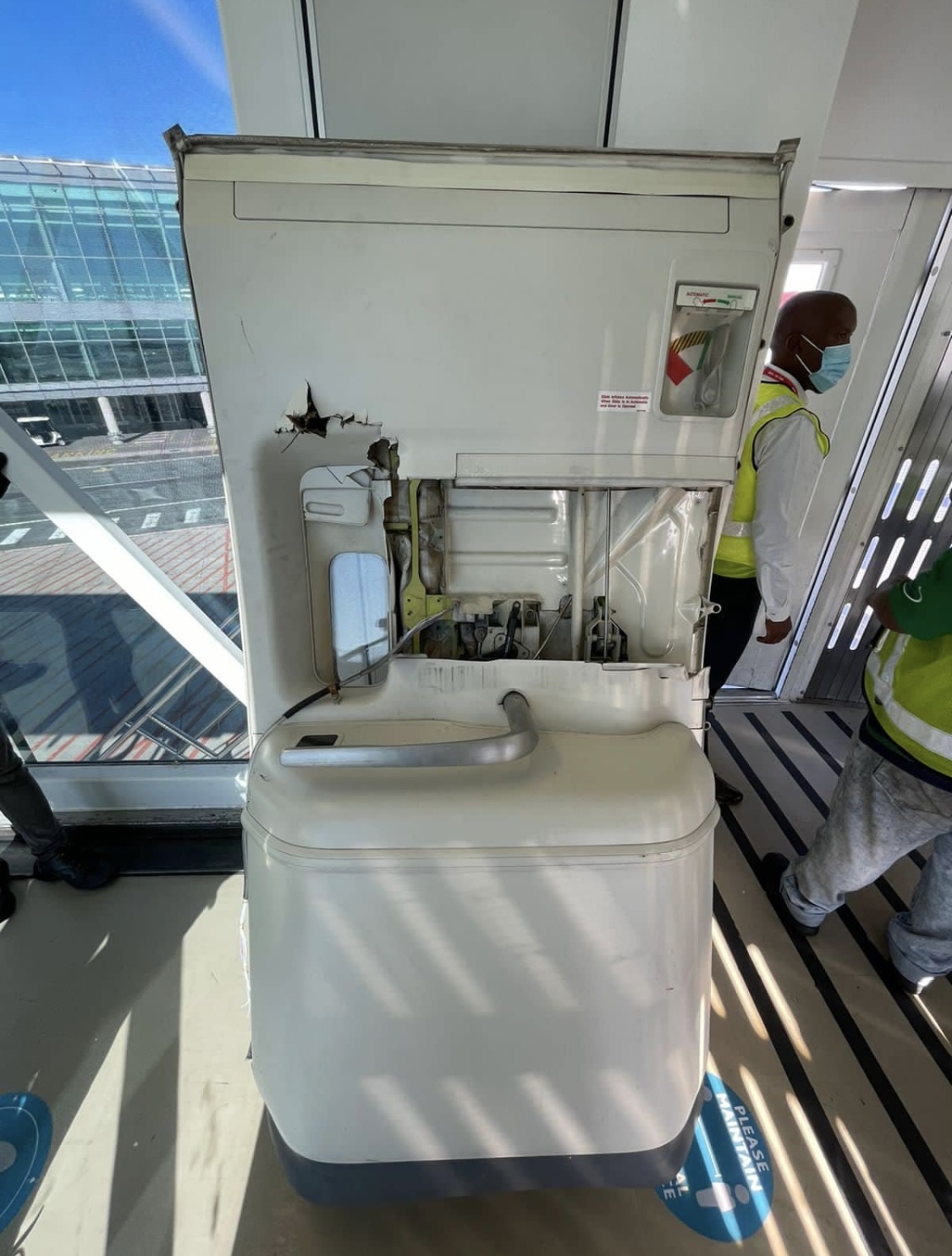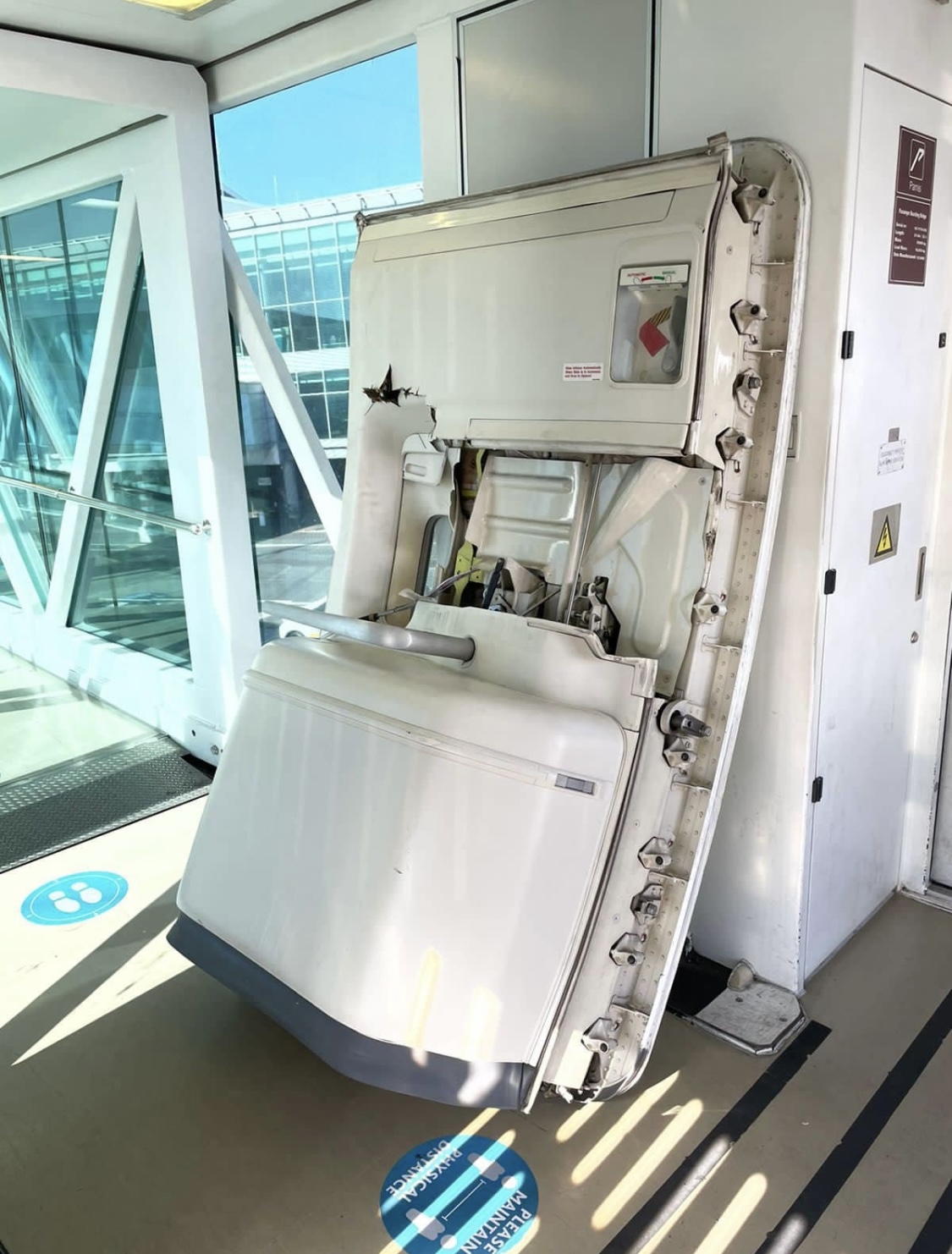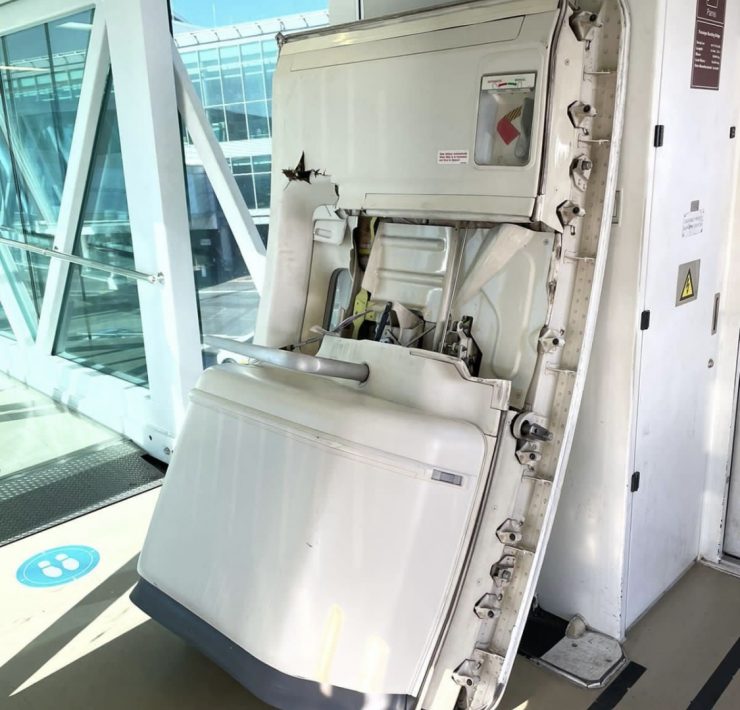 Photos of the aircraft shared on Twitter showed the door propped up inside the jet bridge after being ripped clean off the plane.