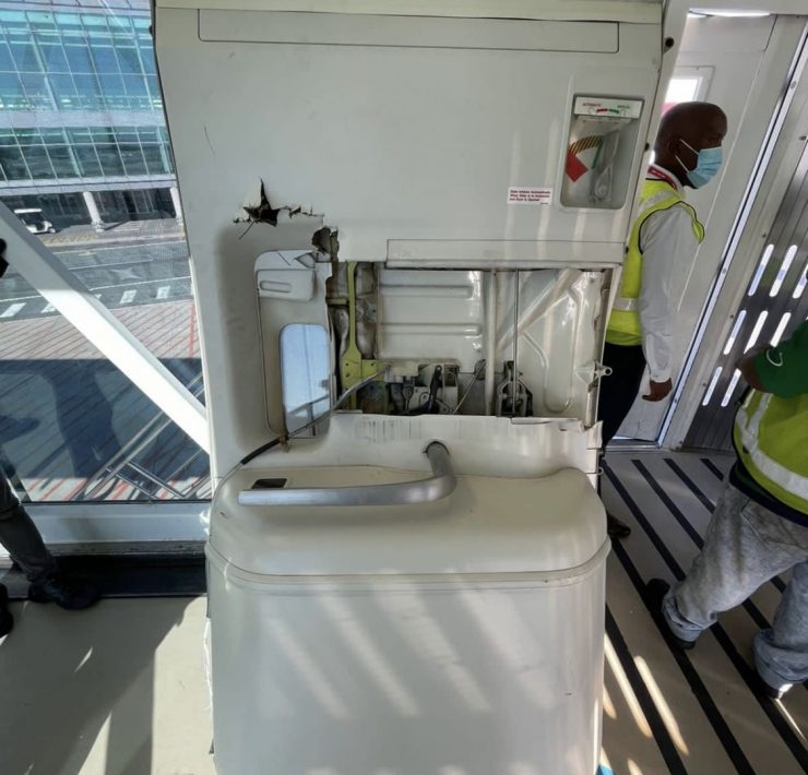 A British Airways operated Boeing 777-200 jet had a cabin door ripped off while it was preparing for departure in Cape Town on Wednesday evening. The aircraft was parked at the terminal and connected to a jet bridge with the cabin door open when a tug driver allegedly started to push the plane back.