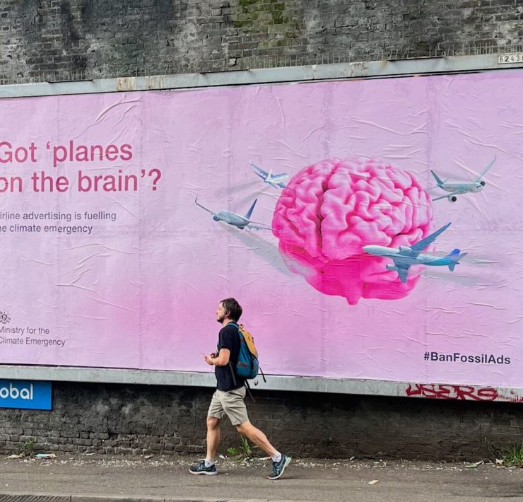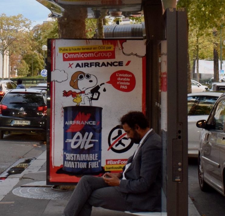 “Advertising plays a crucial, but often overlooked, role in fueling the climate crisis,” commented Andrew Simms from Brandalism’s UK campaign. “By pushing high-carbon goods, such as cheap flights, advertising is complicit in driving carbon emissions higher at a time when we need to see an urgent reversal”.