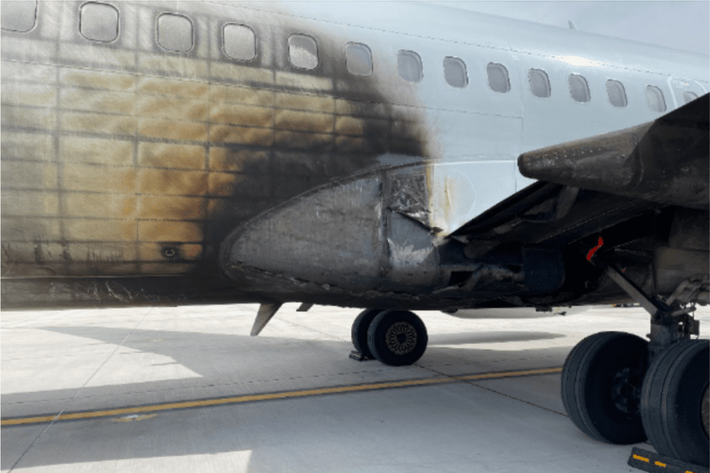 Video obtained from airfield cameras at the Denver Airport reveals that the plane left a trail of fluid as it taxiied to the gate for around five minutes after landing. On arrival at the gate, ground personnel jumped into action, using fire extinguishers to put out the flames before the airport fire department arrived at the scene.