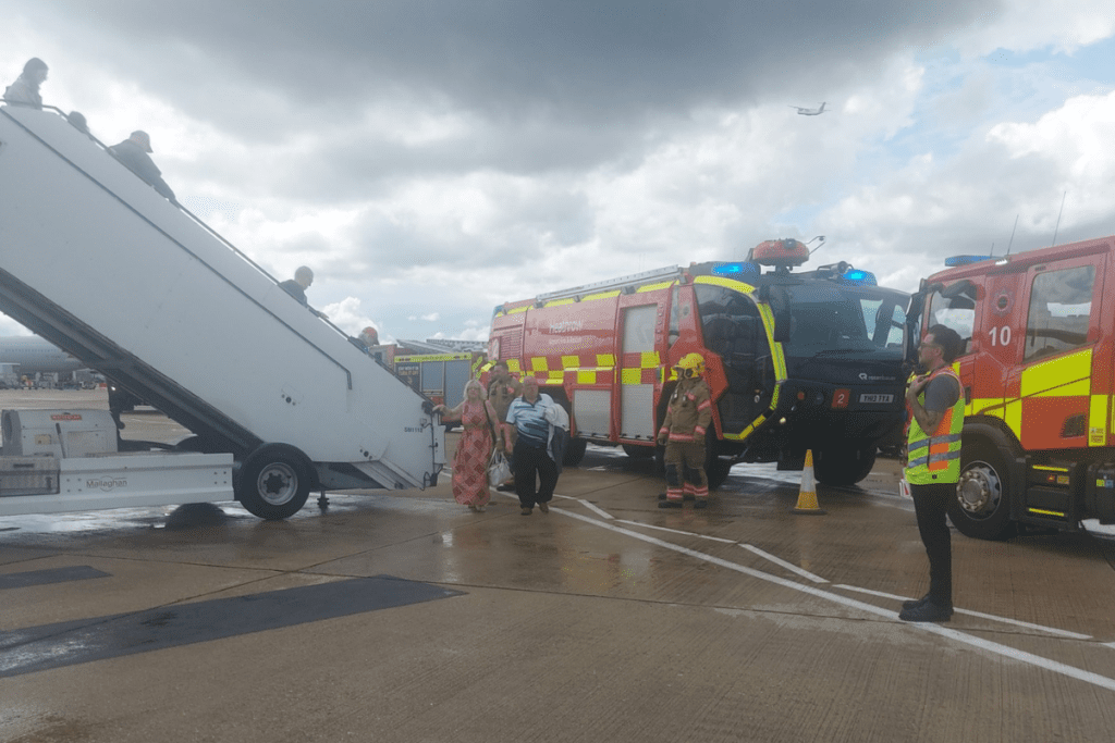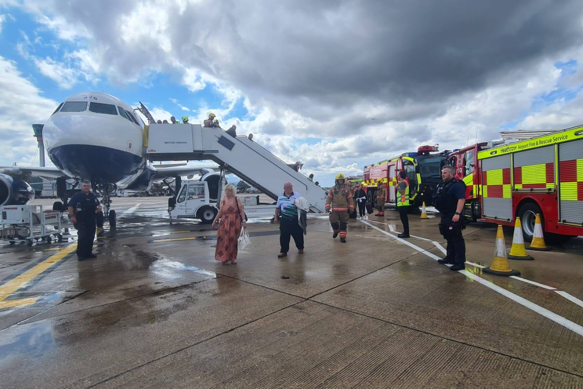- Firefighters were forced to evacuate a British Airways plane at Heathrow Airport after passengers endured a seven-hour delay because of what has been described as ‘toxic’ air. Passengers slammed British Airways for their 'inhuman' treatment and demanded the airline "do a lot better."