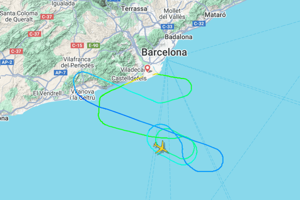The aircraft was in its initial climb out of Barcelona and had reached an altitude of around 20,000 feet when the plane suddenly dropped to 8,000 feet and entered a holding pattern off the coast of the Costa Brava.